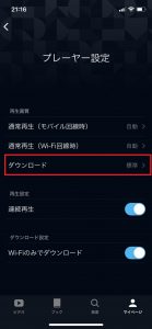 「プレーヤー設定」>「ダウンロード設定」で「Wi-Fiのみでダウンロード」がオンになっていることを確認します。これで誤ってモバイル回線を利用してダウンロードすることを防げます。